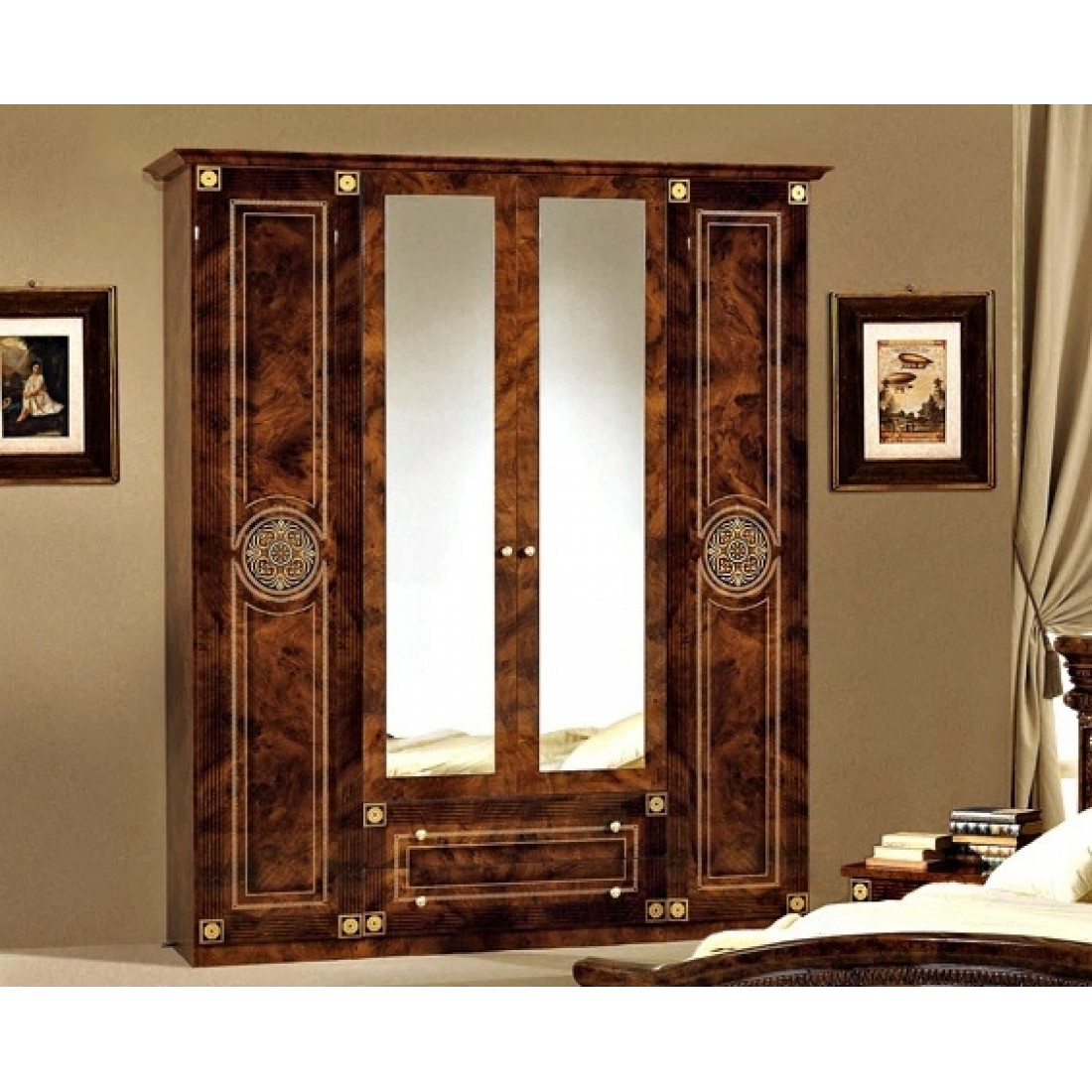 Четырехстворчатый шкаф Рома (орех) от Российской фабрики «ДИА мебель» выполнен в строгом классическом стиле. Ореховый цвет в сочетании с глянцевым покрытием придает элегантность. Такой не большой но вместительный шкаф не обходим даже в маленькой спальне. Зеркало по центру шкафа придаст вашей комнате легкость. Вся коллекция "Рома" предназначена только для истинных ценителей элегантного классического стиля.