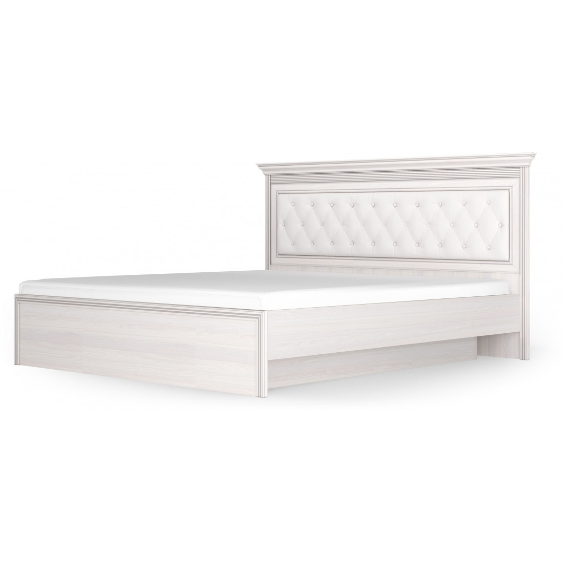 Кровать 1400/1600/1800 с ортопедическим основанием Неаполь Ясень анкор светлый (патина "серебро") экокожа polo белая