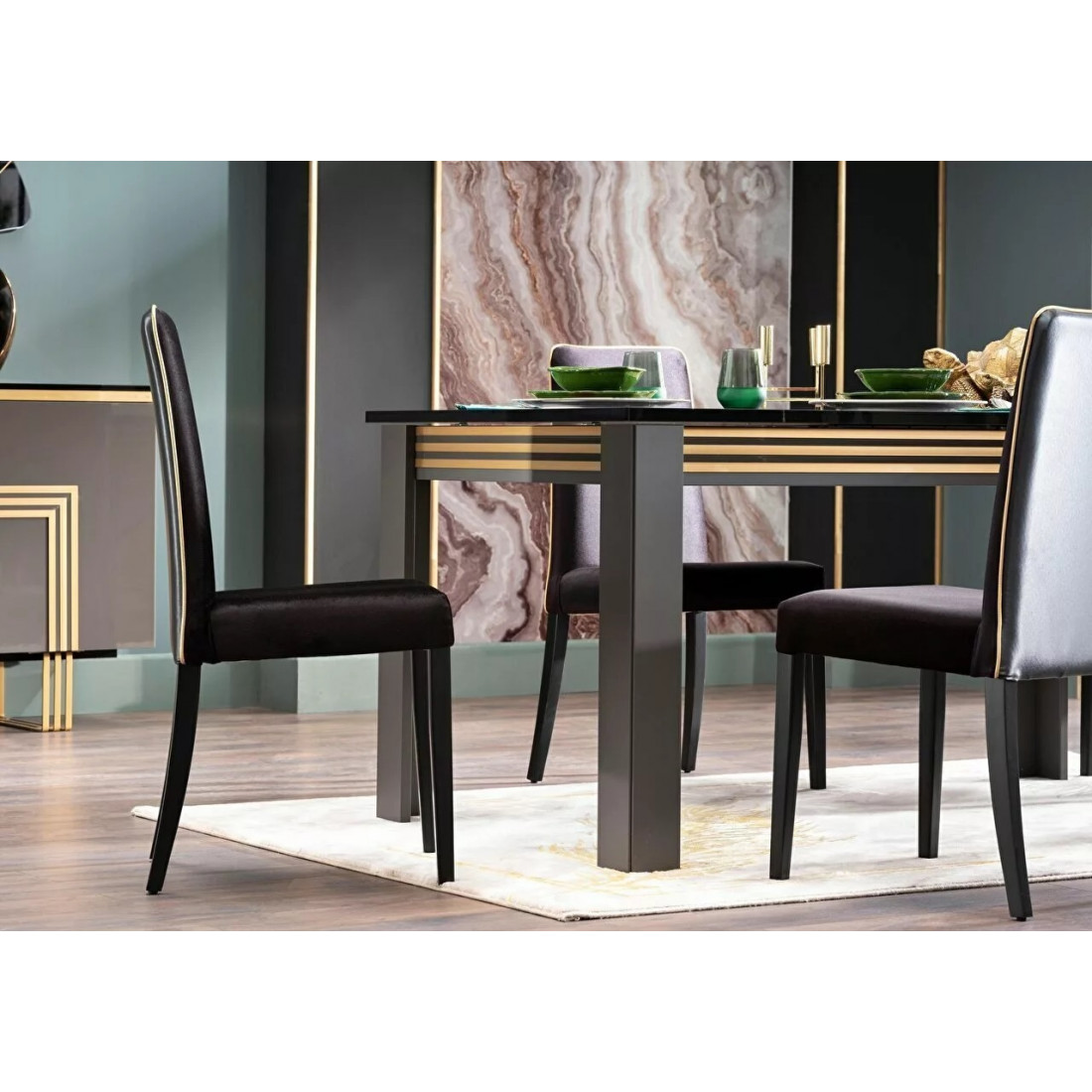 Комплект стульев  для гостиной Карлино (Carlino) CARL-16-02 с прямой спинкой. Оттделка стула бархатистой тканью в комбинации с экокожей.