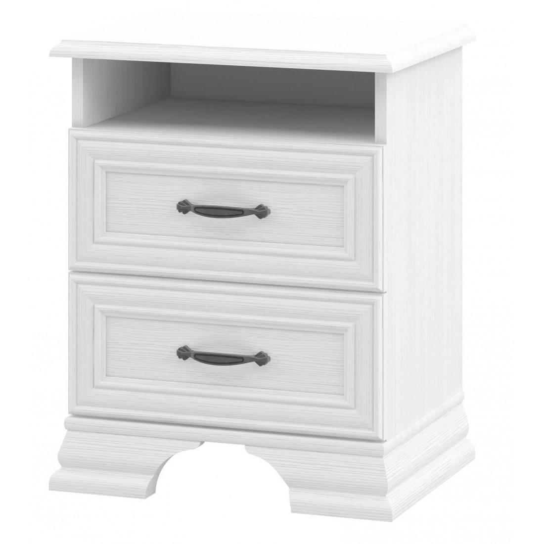 Тумба Юнона МН-132-02 от фабрики Мебель-Неман - прикроватная тумбочка в классическом стиле с отделкой структурной фактуры, обрамленная рамочным фасадом, где металлические ручки выгодно подчёркивают стиль и изящество, всегда актуальна и востребована.