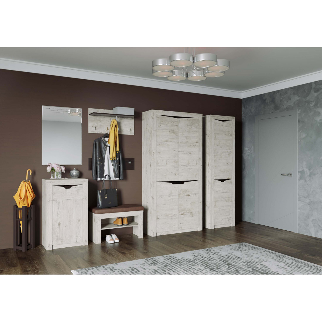 Шкаф для прихожей двухдверный - универсальное решение для хранения верхней одежды. Красивая деревянная текстура, небольшие габариты - эргономичное решение для любой прихожей.