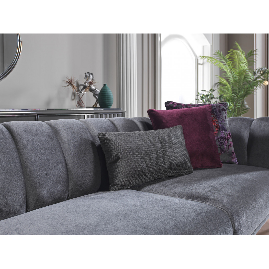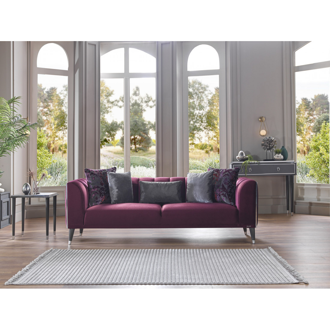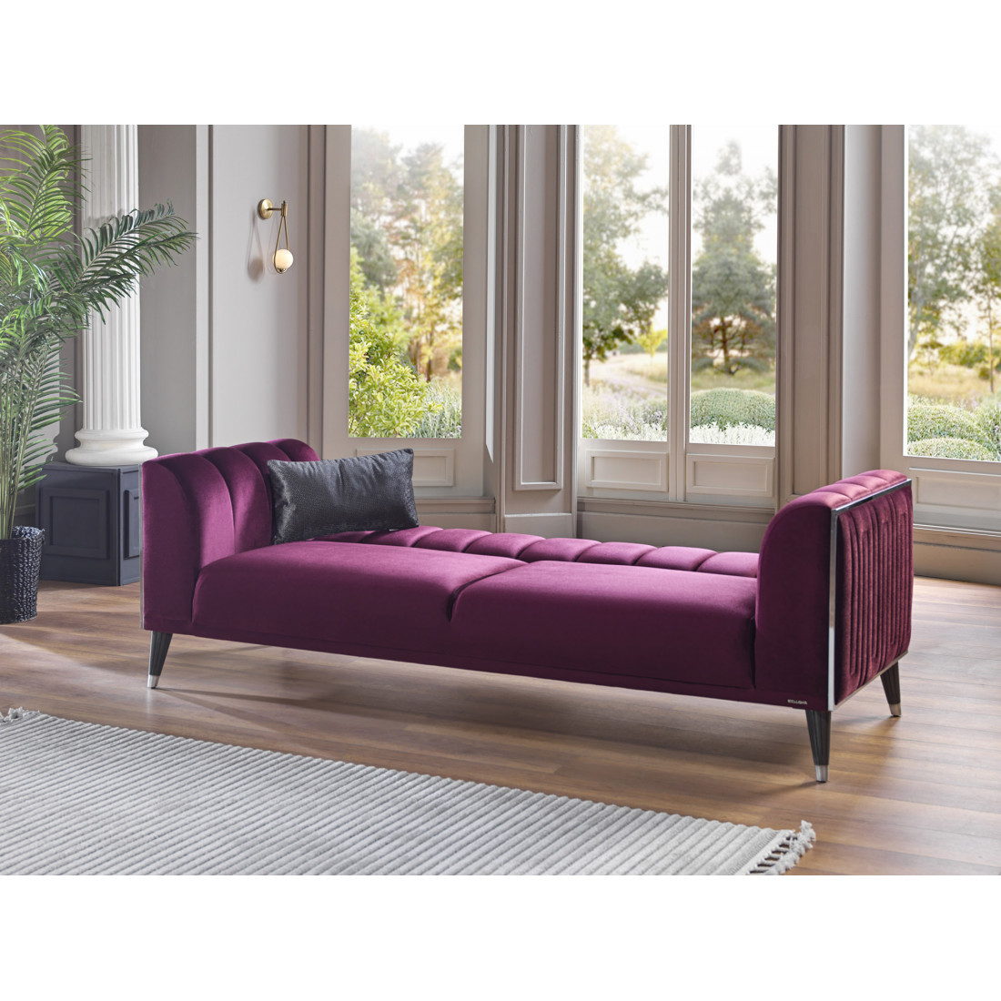 Трехместный диван-кровать Гравита (Gravita) GRAV-02 Беллона вместительный диван с невысокой спинкой. Габаритные размеры дивана 230х88х80см, позволяют трансформировать его в удобную кровать со спальным местом 106*182см. Диван на металлокаркасе, наполнение высококачественный турецкий ППУ. Вертикальная прострочка ткани боковин обрамлена хромированными вставками по периметру. Ножки дивана изготовлены из прочного ABS-пластика.