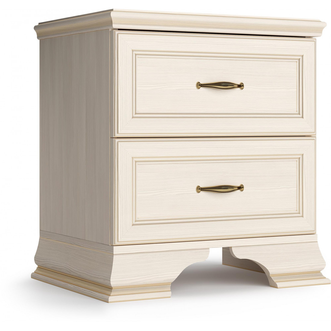 Коллекция производится в текстуре «бодега белый» с эффектом золотого патинирования. Облик «Сиены» дополняют рамочные фасады и карниз в классическом стиле, а также эффектные опоры из МДФ. Мебель комплектуются металлической лицевой фурнитурой премиум-класса в цвете «старая бронза» и надежной крепежной фурнитурой.